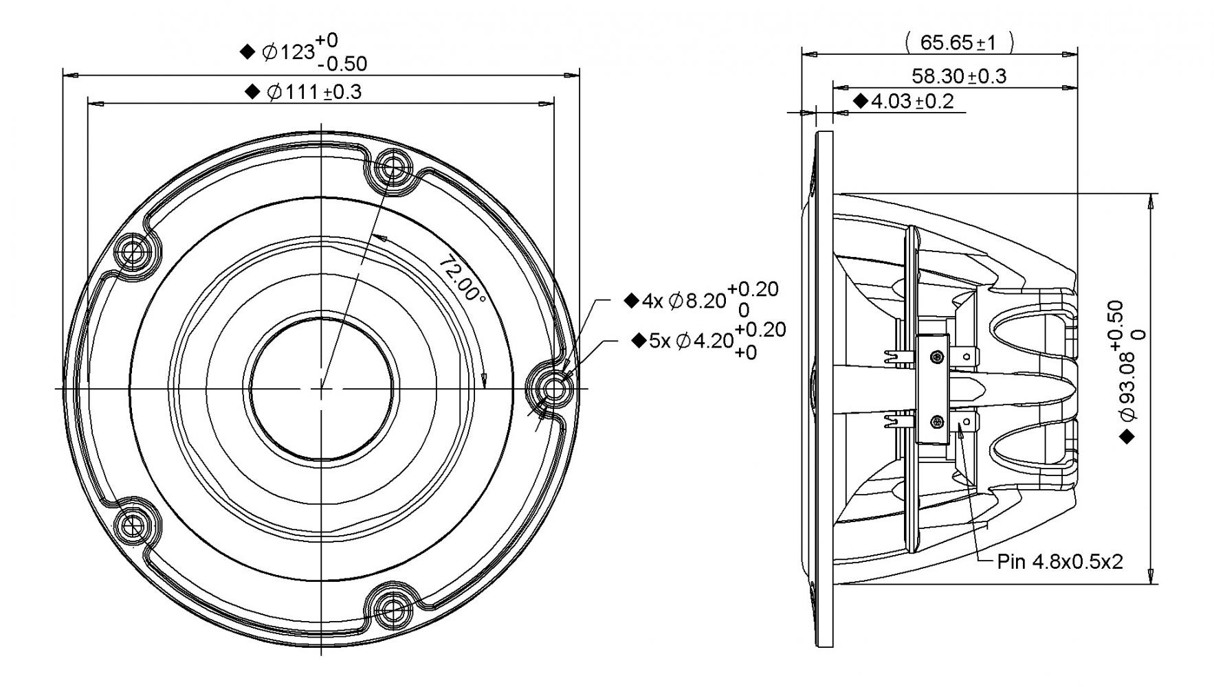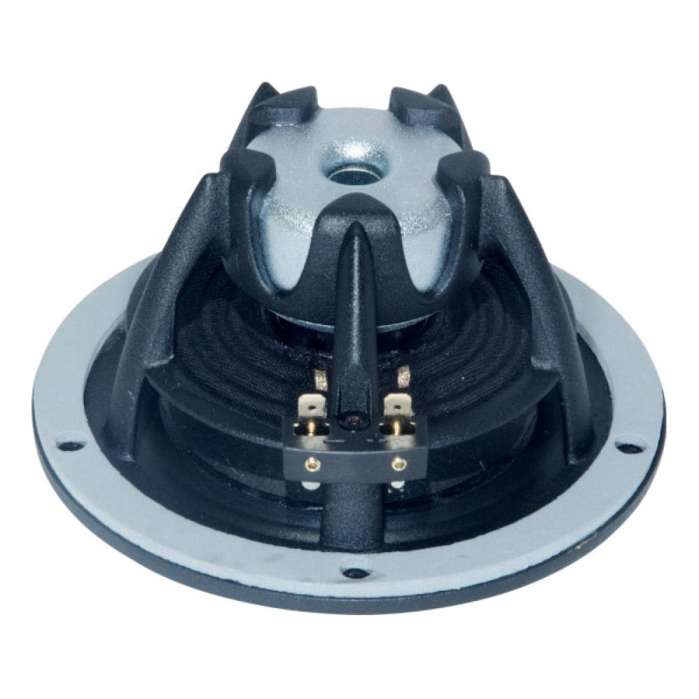 This 4 inch 8 ohm member of the NE family has leading-edge transducer technology packaged in a cutting edge, stylistic design. The woofers in this family feature an innovative cast aluminium basket design which minimizes acoustic reflections inside the driver, through large basket windows and sculpted basket spokes. The basket also is designed to act as a highly coupled heat sink to the Neodymium-Iron-Boron magnet (NdFeB) motor, so as to improve power handling capacity. An additional heat sink is available to provide extra thermal protection if needed. The cone and dust cap are constructed of natural wood fiber material with proprietary coating formulas & processes, so as to yield high clarity products.