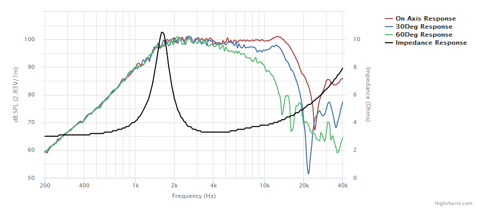 - sound pressure level SPL = 96,2 dB (2,83V; 1m)