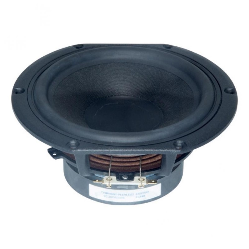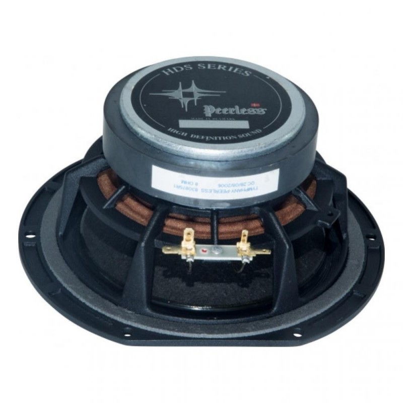 The Peerless HDS-164 Nomex 6.5 inch 8 ohm driver is a member of the high performance HDS family. A powerful ferrite magnet system is coupled to a finite element analysis designed suspension system, containing both a linear spider design and a rubber surround. The motor contains an aluminium shorting ring, which reduces coil inductance, thus providing both extended frequency response performance and reduced distortion. The long-throw voice coil ensures linear high excursion performance, needed for signal clarity. The cone necks are vented so as to reduce air compression effects under high excursion conditions. The cast aluminium basket offers structural rigidity, heat sinking capacity for the motor, and additional air venting under the spider so as to again reduce air compression effects. The cone in this model is nomex based, offering a unique visual and acoustic experience.