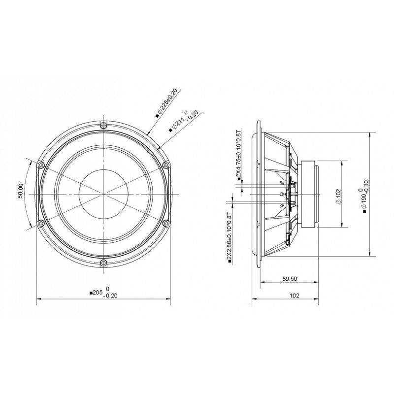 The Peerless HDS-205 Nomex 8 inch 8 ohm driver is a member of the high performance HDS family. A powerful ferrite magnet system is coupled to a finite element analysis designed suspension system, containing both a linear spider design and a rubber surround. The motor contains an aluminium shorting ring, which reduces coil inductance, thus providing both extended frequency response performance and reduced distortion. The long-throw voice coil ensures linear high excursion performance, needed for signal clarity. The cone necks are vented so as to reduce air compression effects under high excursion conditions. The cast aluminium basket offers structural rigidity, heat sinking capacity for the motor, and additional air venting under the spider so as to again reduce air compression effects. The cone in this model is nomex based, offering a unique visual and acoustic experience.